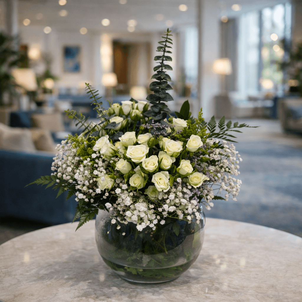 استمتع بإضافة لمسة من الرقي إلى مساحتك مع فازة الورد بيبي روز باللون الأبيض الأنيق. مصممة بدقة تعكس الجمال الكلاسيكي، تجعل كل زاوية في منزلك مليئة بالحيوية والأناقة.