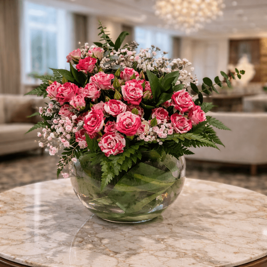 هذه الفازة بالورود الجميلة باللون الأحمر ليست فقط ديكورًا رائعًا بل أيضًا هدية فريدة ومميزة تناسب كافة المناسبات مثل الأعياد، أعياد الميلاد، وحفلات الزفاف.